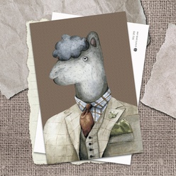 Открытка Лама (на коричневом фоне), ...